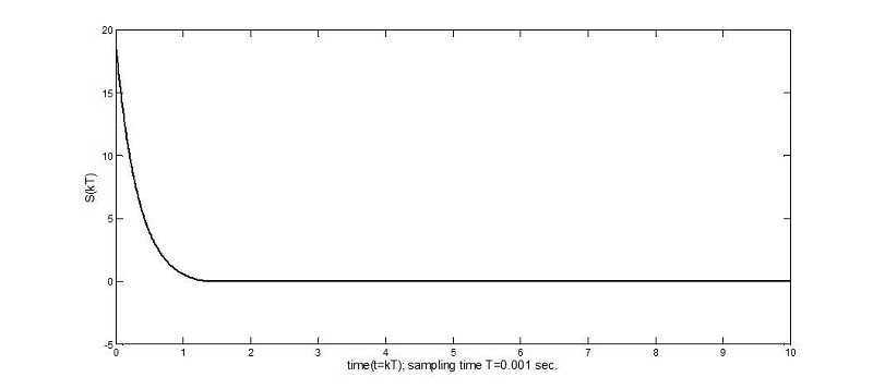 若以取樣間T=0.001秒,則由(2a)式,可以得到其離散系統如(4b)。
