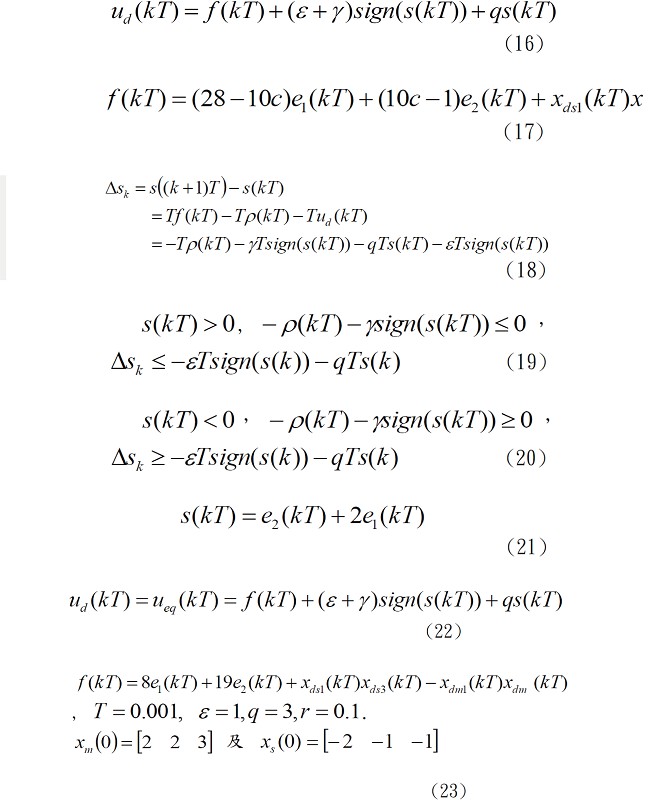 若控制器: u(t) ?R設計為式(16)所示,其中q>0; >0;1-qT>0;T=0.001>0為取樣時間見式(17),則可滿足抵達條件(15)。