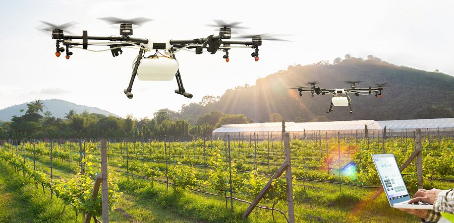 | 圖1 : 許多精準農業在運作時採用自主無人機從上方監測作物狀況,由於配備紅外線和其他專業視覺系統,可以識別關注區域。(source:LAPPconnect) |