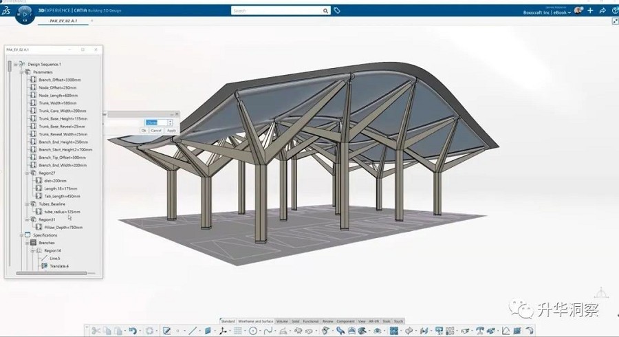 | 圖4 : 電動汽車體驗中心創建特別的幾何曲面形狀屋頂,試圖由結構不同方面而決定的參數輕鬆實現自動化。(source:達梭系統) |
