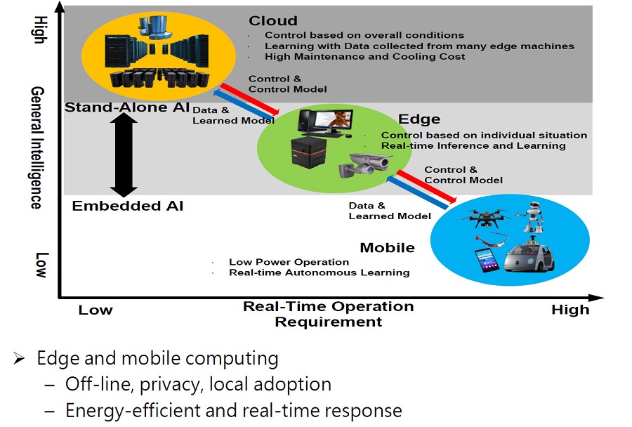 | 圖2 : AI運算從Cloud端到Edge端。(source:H-J Yoo(KAIST), ISSCC 2017) |
