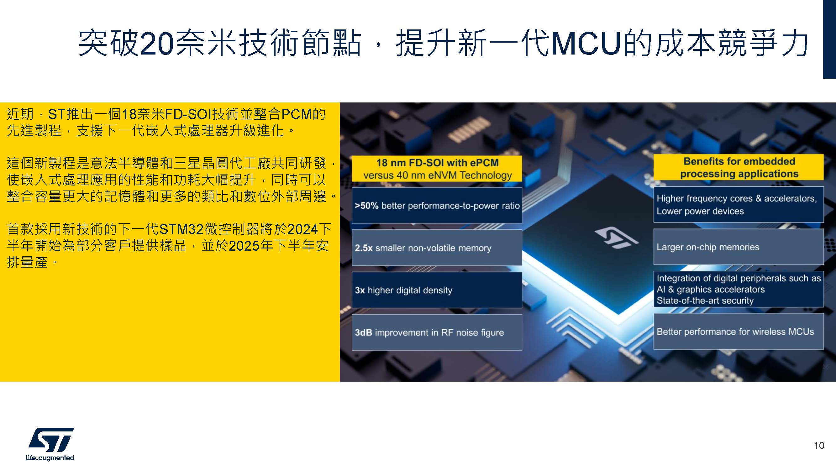 產能方面,楊正廉強調,ST 持續擴充產線,目前產能已達每月 1 億顆,可充分滿足客戶的供貨需求。同時,遍佈全球的銷售網絡和技術支援團隊,也為客戶提供及時、在地的服務。ST 還特別重視社群經營,透過線上論壇、技術講座等活動,與開發者保持緊密互動,瞭解並回應他們的真實需求。